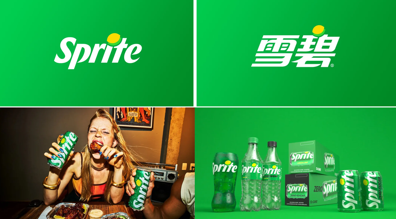为了配合全新的LOGO,雪碧还更新了品牌视觉体系。重新设计的LOGO和包装更加简洁、现代,更具有辨识度。同时,经典的“Lymon”符号的回归,更是唤起了消费者对于品牌的记忆和认同感。整个视觉体系更加强调清晰、锐利的视觉表达,字标、符号与配色都被强化为更具“柑橘般清爽感”的形态,使品牌呈现出更强的冲击力与动感。